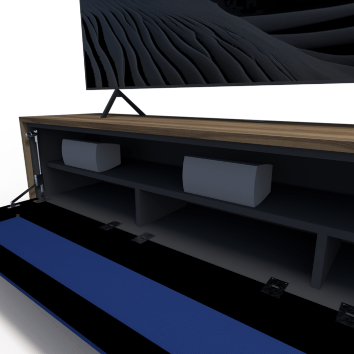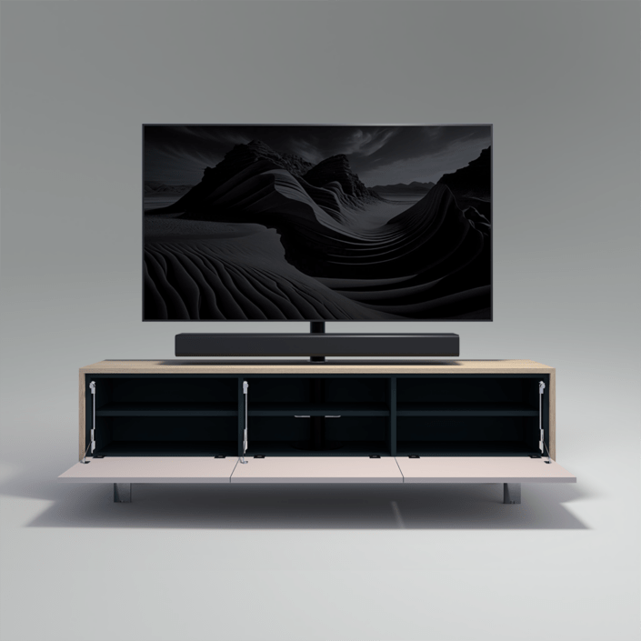 Maak kennis met de Harmony-collectie: stijlvolle TV-meubelen met een front van luidsprekerdoek. Zo verberg je je soundbar of minispeakers moeiteloos, zonder in te leveren op geluidskwaliteit. Ontwerp jouw ideale kast en creëer een TV-meubel dat naadloos aansluit bij jouw interieur en persoonlijke stijl.