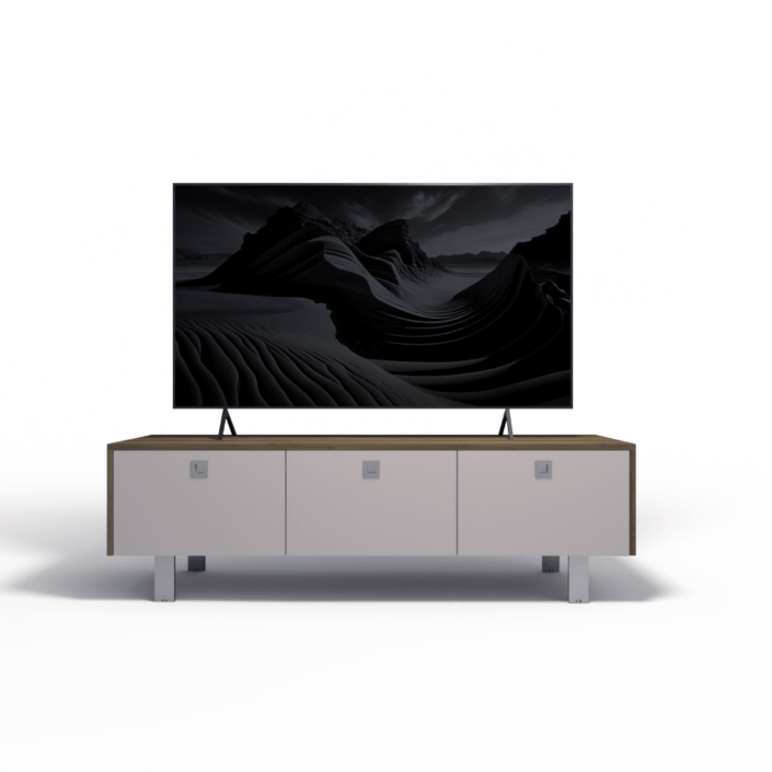 Ontdek de Elegance Trio-collectie: stijlvolle en stevige TV-meubelen met drie afzonderlijke deuren. Verberg apparaten en kabels moeiteloos voor een strak, opgeruimd interieur. Personaliseer jouw kast en creëer een TV-meubel dat perfect past bij jouw stijl en woonruimte.